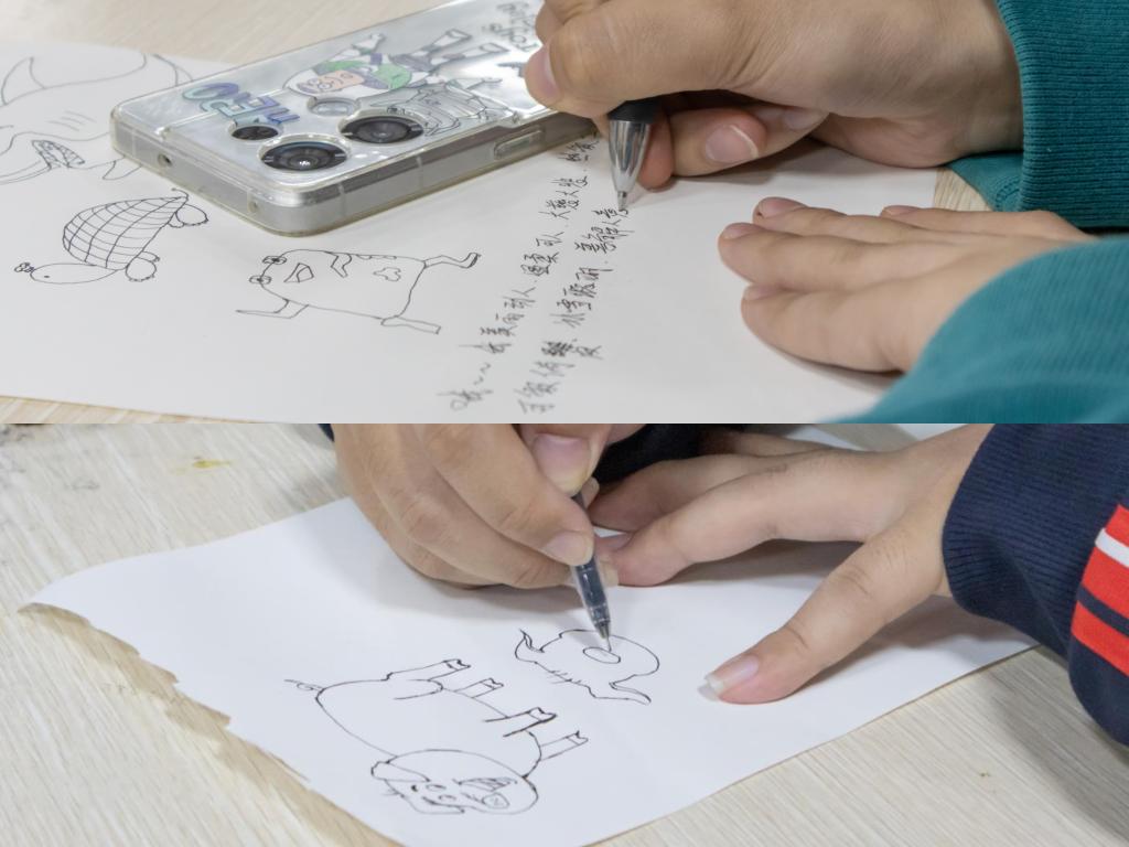 在认清自我环节中,同学们需将在纸上画出自己想要成为的动物或者植物。美术学专业2022级(2)班的李炜琪以猴子形象自喻。“小猴子身上活泼好动、动手能力强等特点我觉得和自己很像,并且猴子也是我的生肖属相。”她表示,希望在今后的大学生活中依旧能保持乐观积极的心态,结识更多志同道合的伙伴。