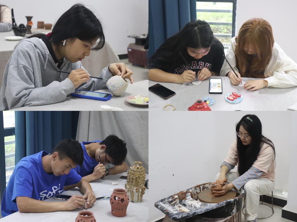 “哇!这个瓶子太好看了吧!”“这个茶杯是怎么做的?”……自活动开始,前来参观体验的学生络绎不绝,现场氛围十分活跃,不少学生都将自己的成果“晒”到了朋友圈。“这次活动不仅让我了解到了陶艺的制作过程,还欣赏到了许多精美的陶艺作品,对于一个喜欢做手工的人而言,这样的体验是十分宝贵的。”学前教育专业2021级(2)班的董雨佳表示此次活动让她“收获满满”,今后自己也会继续深入学习相关知识,以此来提升自己的艺术素养。