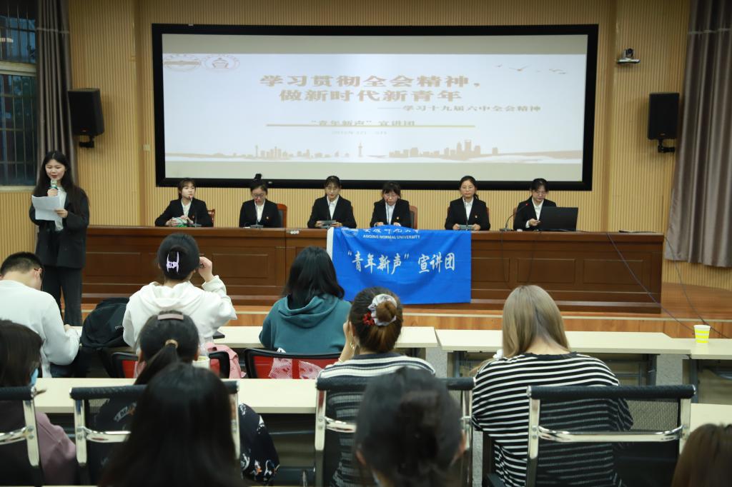 “时代是出卷人,我们是答卷人,人民是阅卷人。”思想政治教育专业2021(1)班的张雅雯在宣讲最后以大学生村官秦玥飞为例,鼓励同学们做担当作为的实践者、笃学敏行的表率者、优良作风的践行者,积极投身时代建设,贡献青年蓬勃力量,“我们一定要深入学习贯彻十九届六中全会精神,以优异的成绩迎接党的二十大的胜利召开。”