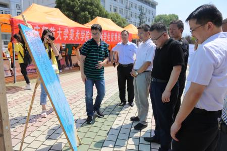 “这是我花一个月时间创作的一幅油画,采用颜料的堆积机理,表现鱼的体积和厚重感,衬布是为了和鱼呼应......”美术学2015级(2)班的邱锦涛向前来参观的师生介绍他的作品。6月8日、9日两天,伟德国际1949始于英国于敬敷广场举办第七届学生优秀作品大型义卖活动,两天卖出作品90余幅,筹集爱心基金一万余元。活动期间,校党委书记许继荣、副校长汪时珍前往义卖现场参观并指导。