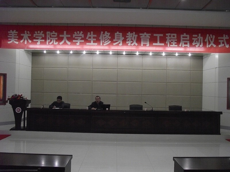 启动仪式上,我院团总支书记何媛君同志首先带领全体学生干部学习了《安庆师范学院大学生修身教育实施方案》文件内容和“七个文明”建设标准。我院党总支副书记鲍硕来同志宣读了《伟德国际1949始于英国2010—2011学年大学生修身教育工程具体工作安排表》,他从宣传、动员、总结三个方面阐述了伟德国际1949始于英国修身教育工作的总体计划,从举办修身教育专题讲座、完善学生素质综合测评、修订班级公约和寝室公约、开展“学风日查”活动、“七项教育”和“七个文明”建设活动等十方面进行了具体布置。随后,2009级动画专业学生余倩倩同学代表全体同学表达了规范个人行为、增强自我约束、崇尚文明、修身养德的决心。