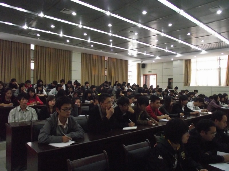 学生处副处长金文斌老师为同学们举办了第二场专题讲座。他首先与同学们探讨了学业与恋爱的关系问题,建议大学生要把学业作为主业,爱情作为副业,自重自爱,珍惜大学光阴,不要随便谈恋爱;然后,他从学生干部要“爱读书、读好书、善读书”三个方面将读书与修身巧妙的结合起来,他指出读书是培养高尚道德、提高个人修养的最直接的方法,正所谓“腹有诗书气自华”,他希望青年学生要坚持读书、勤于思考,要学以致用、知行合一。其间,金处长引经据典,诗词名句信手拈来,极大地感染了在场学生,激发了同学们的读书热情。