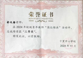 支教期间,俞文静积极参与学校教育教学竞赛,在2024年11月举办的青年教师“岗位练兵”活动中表现优异,充分展现了我院学子的专业水平与综合素养。大观区十里中心学校在信中特别提到:“俞文静老师用行动诠释了新时代青年教师的使命担当,她的敬业精神与专业能力为我校艺术教育增添了亮丽色彩。”