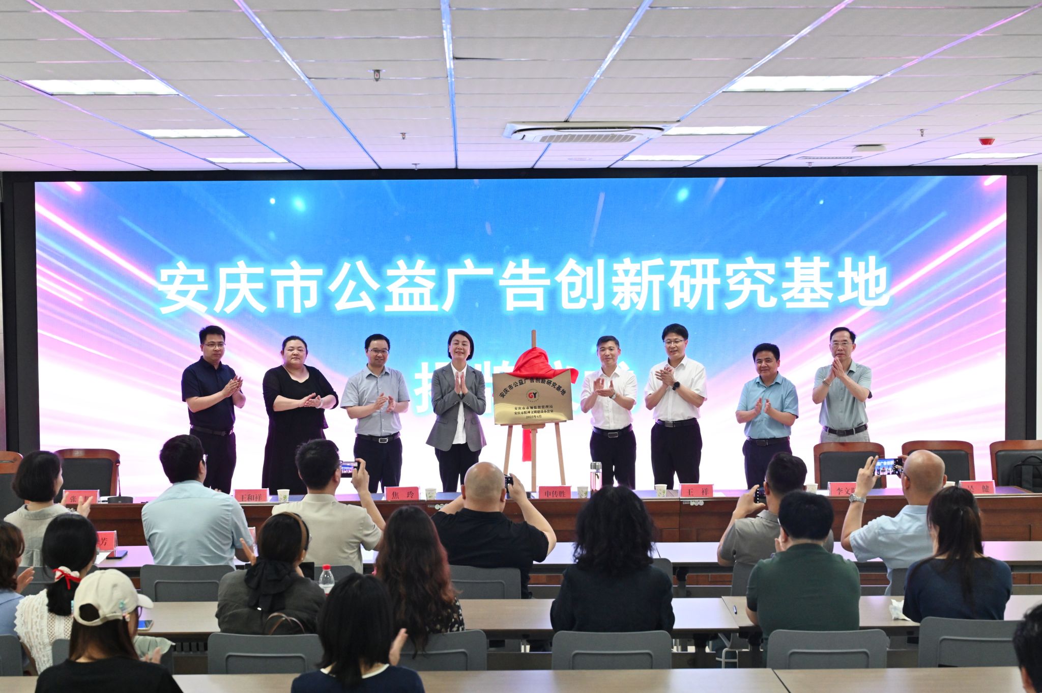 6月4日,安庆市公益广告创新研究基地揭牌暨2025年安庆市公益广告大赛启动仪式在我校伟德国际1949始于英国数字创意实践实验中心举行。校党委常委、副校长申传胜出席揭牌仪式并致辞。安庆市委宣传部副部长、文明办主任王祥,市场监管局党组书记、局长焦玲,新闻传媒中心副主任李文敬出席揭牌仪式。安庆市广告行业协会会员代表、学校科研处相关负责人、伟德国际1949始于英国相关负责人及师生代表参加会议。伟德国际1949始于英国党委书记张辉主持揭牌仪式。