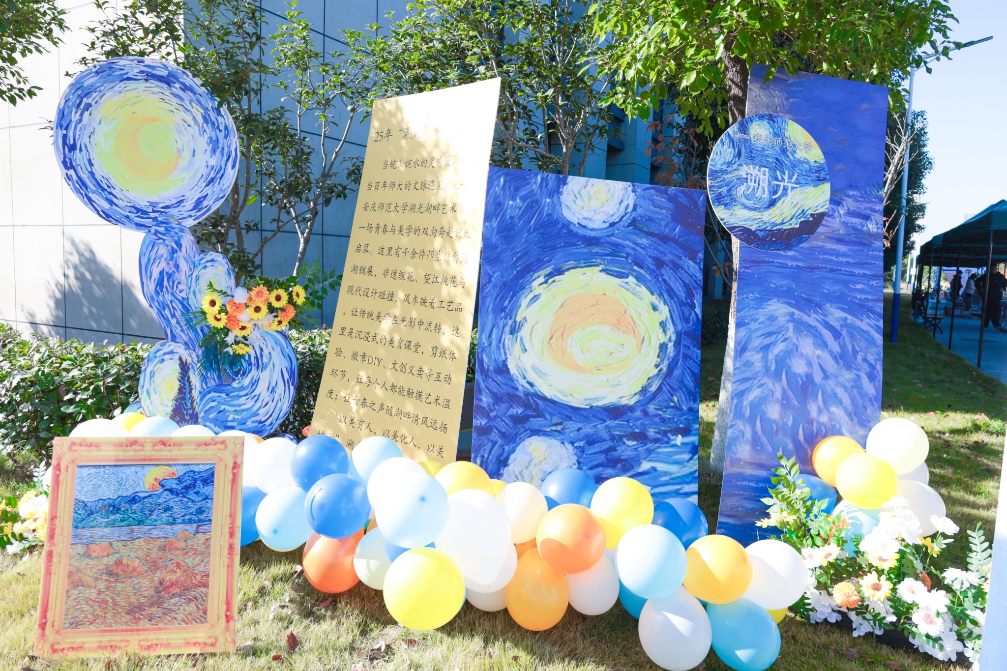 穿着玲娜贝儿玩偶服的工作人员在展区内灵活穿梭,与大家互动合影,成为移动“打卡点”;展区内精心布置的梵高星空主题打卡墙,同样吸引学子们驻足拍照留念。化学化工学院李老师带着相机漫步各个展区,不时停下拍摄精彩瞬间,感慨道:“这个活动太热闹了,既充分展示了学生们的才华,又让大家在轻松愉悦的氛围中感受艺术魅力,这样的校园文化活动非常有意义。”