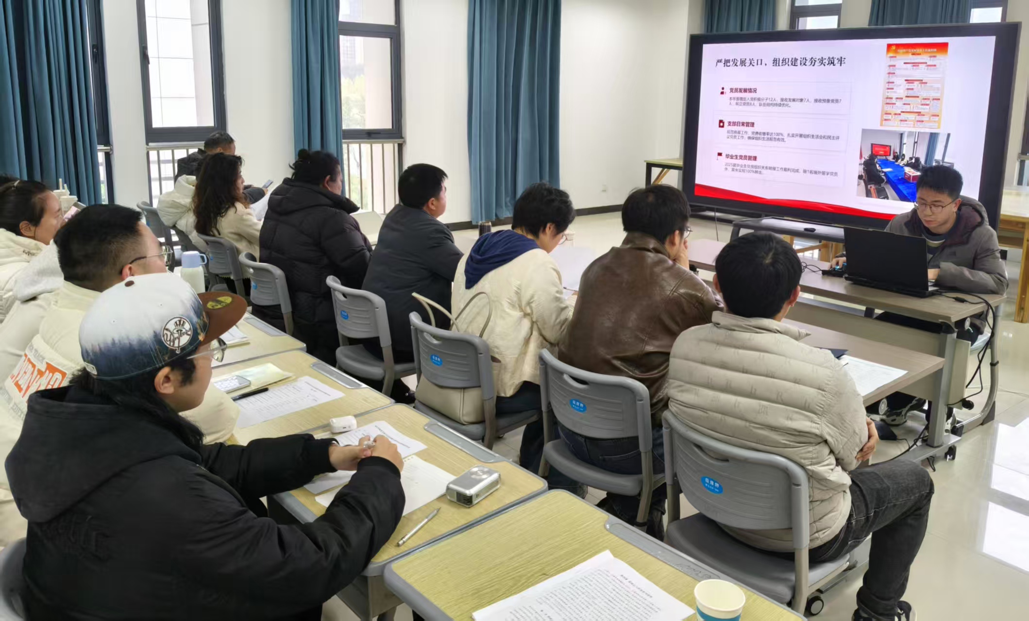 会议要求,各支部要在规范基础工作流程,筑牢支部建设根基上下功夫。严格落实党员发展全流程规范,确保程序严谨,材料填写规范。常态化开展党建业务学习,提升支委班子与党员履职能力,推动支部基础工作标准化、制度化。要在强化党员示范引领,凸显支部特色亮点上下功夫,立足实际打造特色化党建品牌,切实发挥党员先锋模范作用与支部战斗堡垒作用。要在推动党建工作与人才培养、专业建设深度融合上下功夫,将党建要求融入教学、科研与学生管理全过程,让党建工作更接地气、更具实效,持续提升组织生活吸引力与凝聚力。(撰稿、摄影:文雯 审核:张辉)