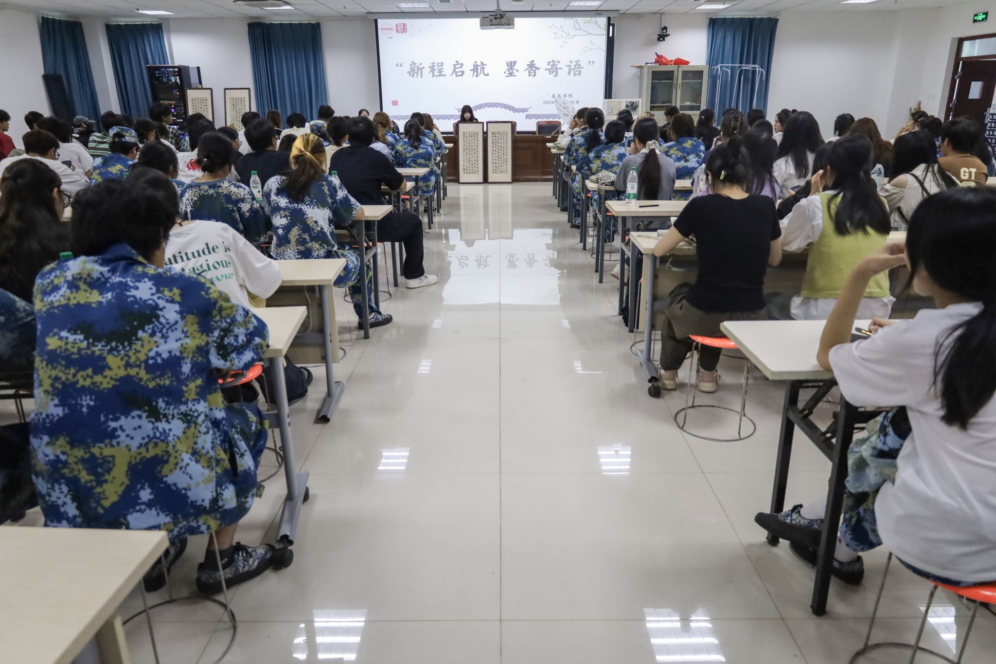 美术学专业2024(1)班的丁玮一笔一画在书签上写下“我与我周旋久,宁做我”这一寄语。“这句话时刻提醒着我要坚守内心的真实与自我,不能被外界的声音所左右。”她坦言,这不仅仅是一句寄语,更是对自己的期许与承诺,她希望大学四年里能够通过自己的笔触和创意,在美术这条道路上留下属于自己的独特印记。