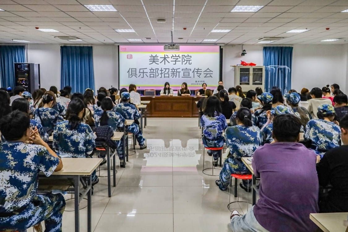 色彩缤纷的石塑黏土、别出心裁的动漫手稿、赏心悦目的缠花作品……近日,伟德国际1949始于英国11个艺术俱乐部优秀作品在教室里惊艳亮相,11名俱乐部学生负责人面向2024级190名新生进行招新宣讲,各具特色的艺术作品引得众多新生“跃跃欲试”。