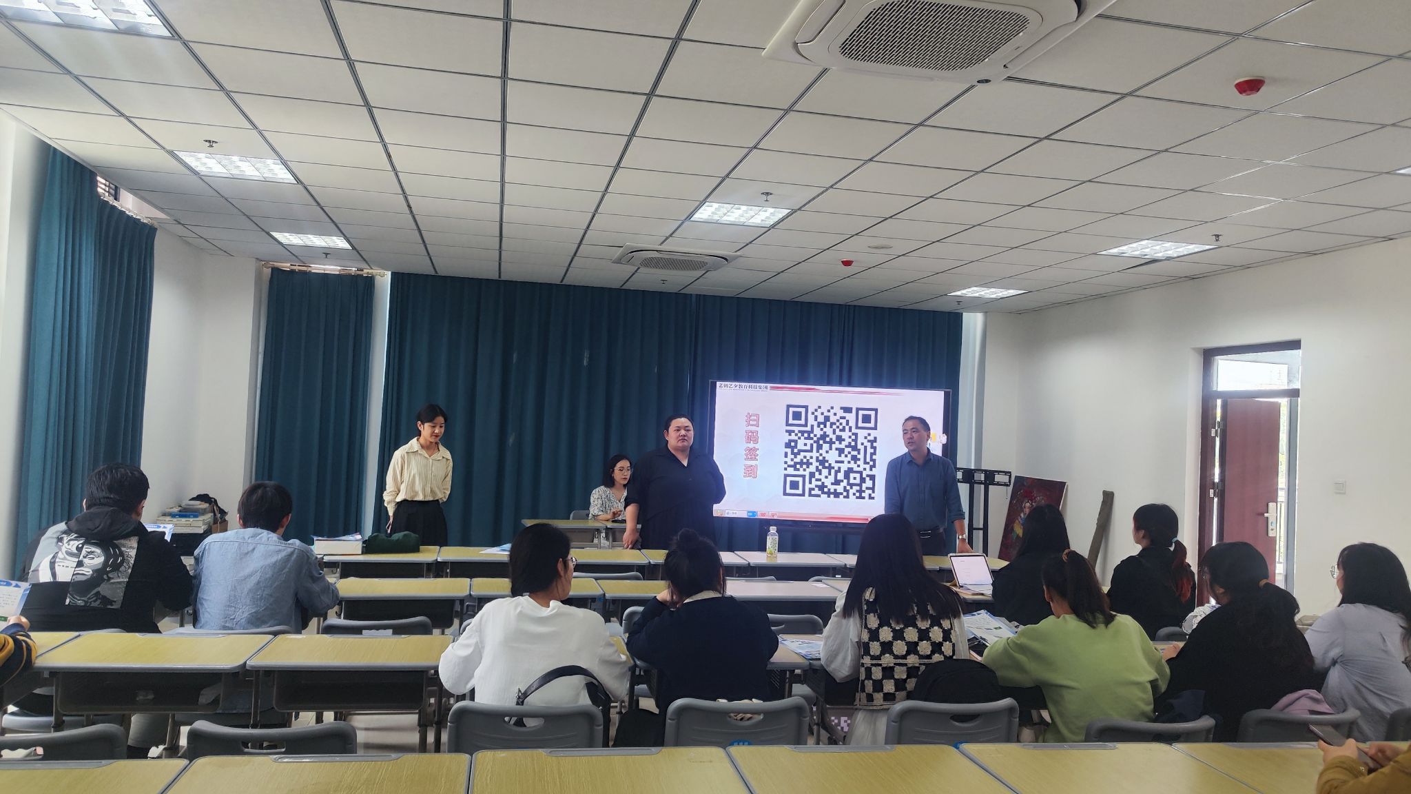 宣讲会上,合肥艺朝艺夕教育科技集团相关负责人详细介绍了集团发展概况,简要介绍了总公司的基本情况,围绕此次招聘岗位、需求专业、岗位职责与要求、薪资待遇等方面进行了重点宣讲。宣讲结束,现场进行了互动环节,同学们针对工作时间安排、食宿安排以及晋升发展通道等问题进行了交流答疑,现场气氛热烈。