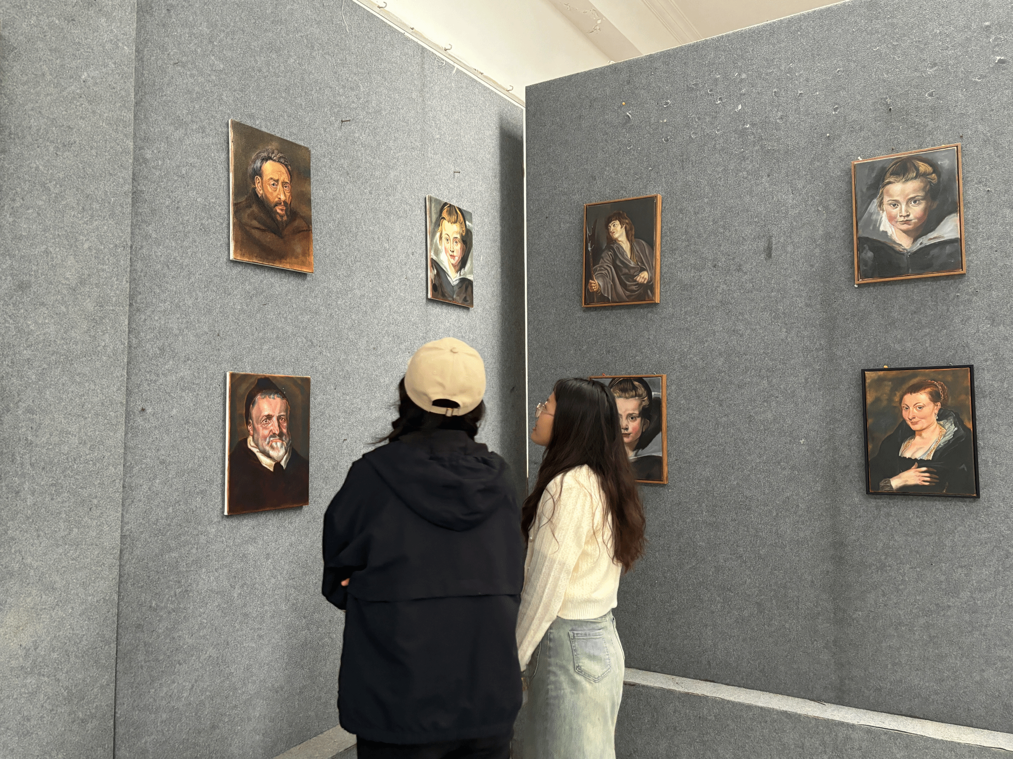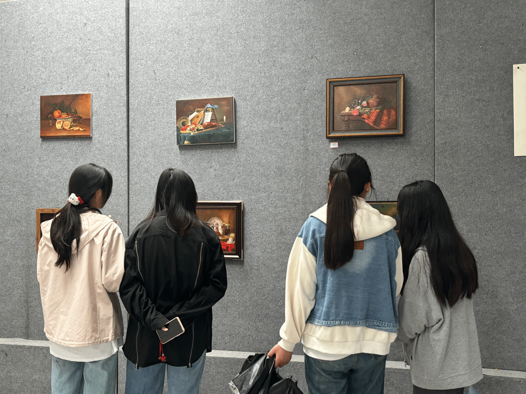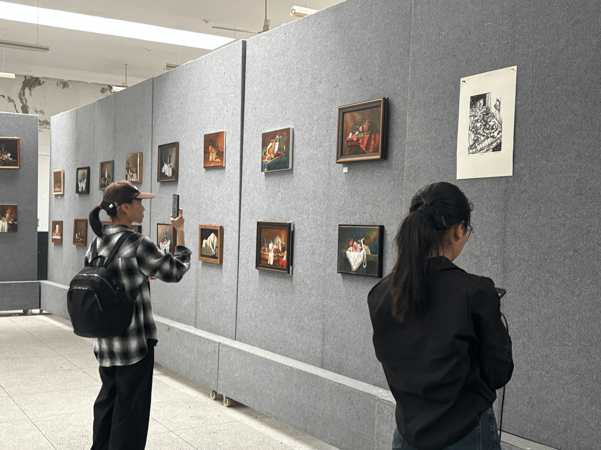 在展览现场,同学们纷纷驻足观看,不时发出赞叹声。他们被这些作品中所蕴含的情感和技巧所打动。美术学专业2023(2)班的陈悦悦表示,“墙上的每一幅画都传达出不同的感受,仔细观看后发现每一处都十分细腻,今后我也要向学长学姐学习,认真学习专业知识,希望未来我的优秀作品也能展现在这里。”