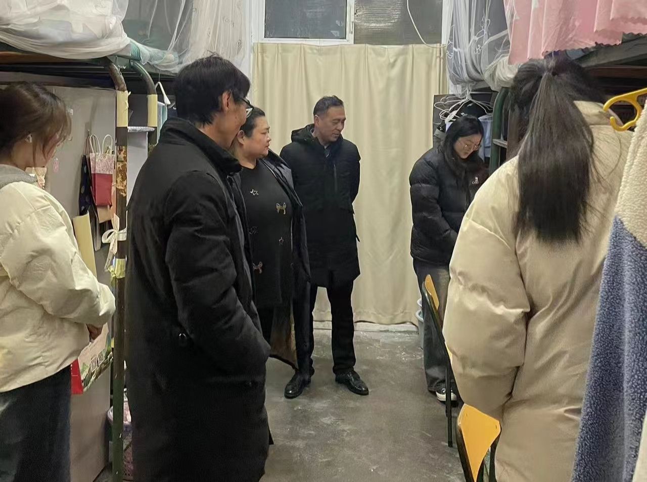 走访过程中,学院领导详细了解了本科生、研究生返校和请假情况,询问了同学们寒假期间“返家乡”社会实践和开学初各项准备情况,特别是针对宿舍大功率电器使用、“反电诈”和星级寝室的创建等进行了温馨提醒和宣传教育,具体了解了开学初学生在住宿、上课、家庭突发情况等方面存在的问题和困难。走访组一行边走访宿舍,边鼓励同学们,新学期新面貌,大家要珍惜韶华、积极实践、夯实本领,以优异的成绩和饱满的状态迎接学校新一轮本科教育教学审核评估和师范专业认证工作。
