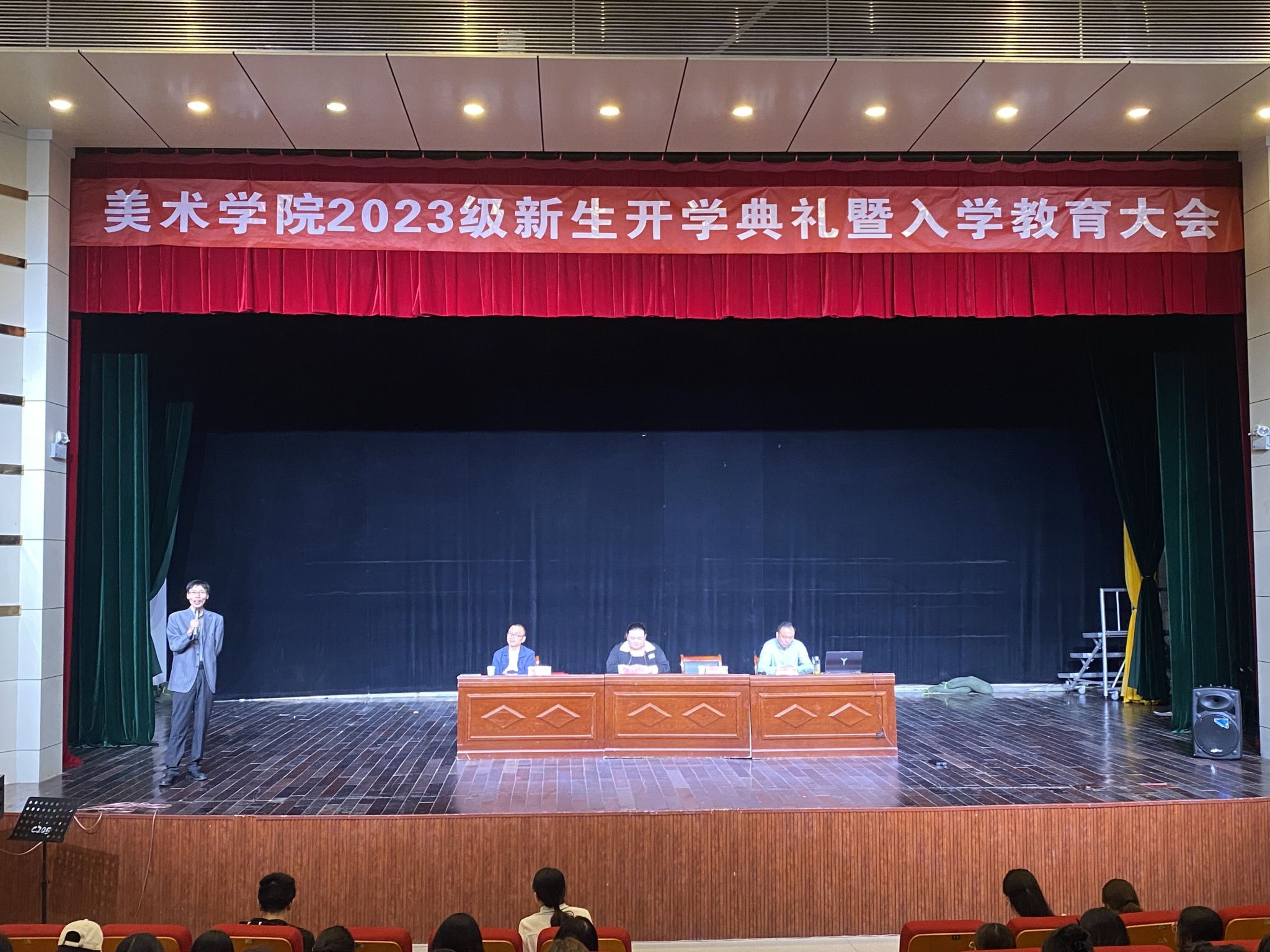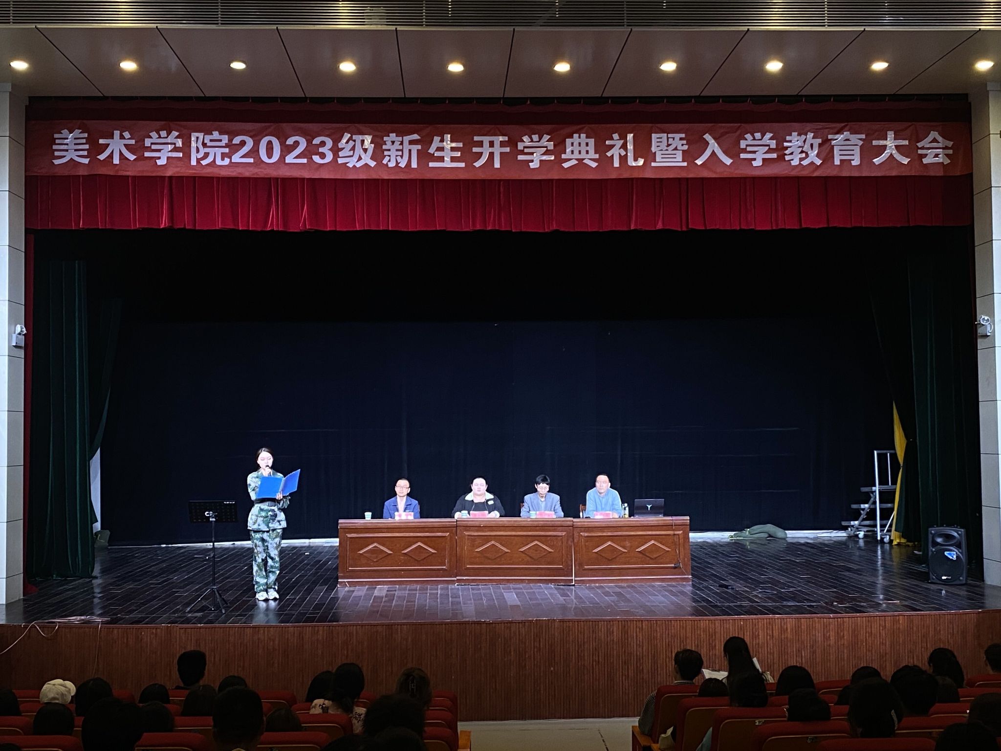 大会在庄严嘹亮的国歌声中拉开序幕。孙根华代表学院致欢迎辞,他对全体2023级新生考取伟德国际1949始于英国表示了热烈欢迎,对同学们顺利完成军训表示了祝贺,同时对新生的大学学习生活中提出了三点希望:要以蓬勃向上的姿态提高专业素养,多画多练,沉淀本领;要以艺术育人的风度彰显审美追求,注重品德修养,完善个人品格;要以铁肩担道义的精神勇担家国大任,报效祖国,服务人民。