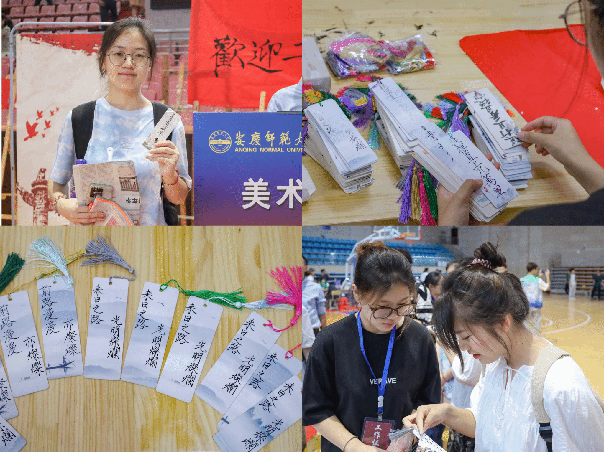 买卡片、写祝福、挂流苏,新生正式开学前,伟德国际1949始于英国书法俱乐部的50余名成员就开始筹划制作迎新礼物。在小小的活动室里,俱乐部成员们分工协作,互帮互助,认真负责完成每一道工序,为243名2023级新生每人准备了一张“独家”书签。
