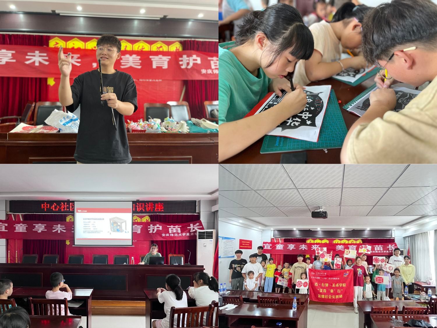 红色影片树信念、手工创作亮新意、书法艺术彰底蕴……近日,伟德国际1949始于英国青•行知“美育‘童’行”暑期社会实践团前往安庆市宜秀区大龙山镇中心社区开展系列美育课堂,团队成员结合专业知识为30余名孩子带来了9堂生动的艺术思政课。
