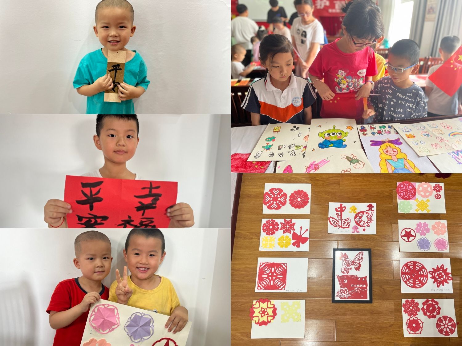 绘制图样、分区上色、裁剪拼装……为给孩子们带来更好的艺术体验,团队成员立足儿童视角,将手工趣味性与思想教育性相结合,开设创意纸杯、超轻粘土、红色剪纸等多种类型的手工课,让孩子们在趣味体验中感受艺术的魅力。