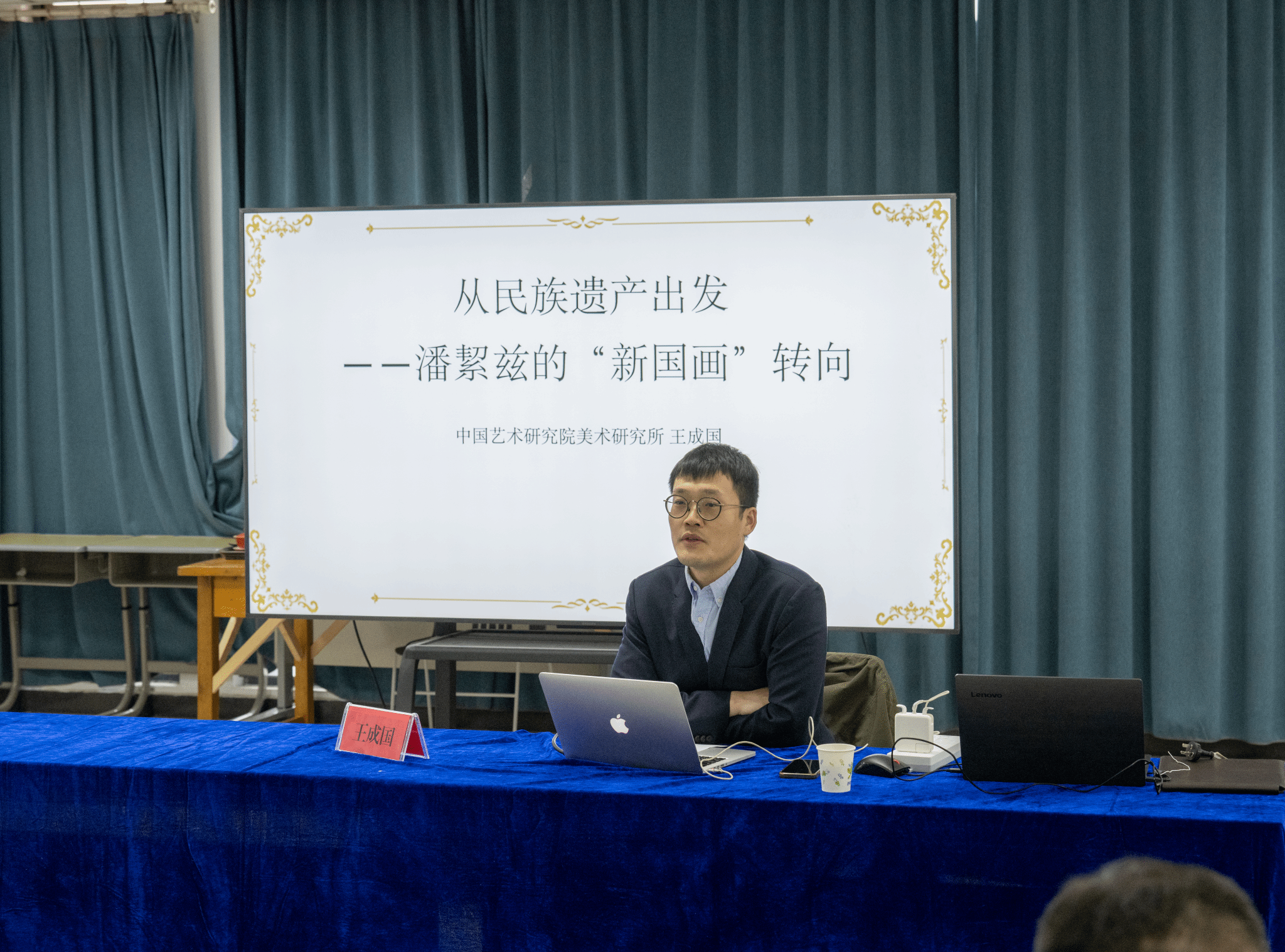 3月28日下午,在伟德国际1949始于英国P楼210多功能教室,中国艺术研究院美术研究所副研究员王成国博士应邀开展了一场主题为“从民族遗产出发:潘絜兹的‘新国画’转向”的学术报告。报告由伟德国际1949始于英国副院长孙国良教授主持,伟德国际1949始于英国部分教师及学生聆听了学术报告,并积极地参与了现场交流。