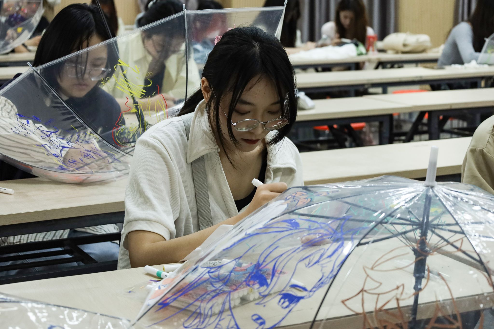 俯身在伞面上悉心勾画,画笔起落间,一个线条灵动的动漫角色便出现在伞面上。“伞面上的图案是我喜欢的一位动漫角色,我想通过此次活动让更多人了解它,并在活动中结识更多同好。”美术学专业2023(2)班的朱菡娜坦言,此次活动为她提供了一个展示自己喜爱的动漫角色与结交新朋友的契机,今后,她希望能更多地参与类似的活动。