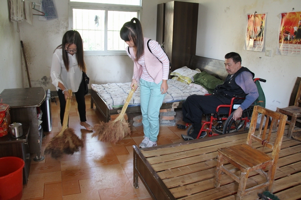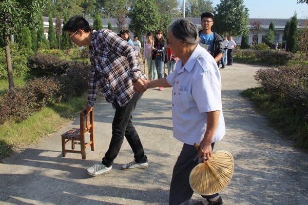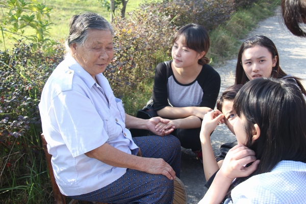 在五横乡敬老院,志愿者们有的为老人整理房间和打扫卫生,有的陪老人聊天。一些老人说话已经不那么利索,耳朵也不太好使,与志愿者们的聊天排解了他们内心的寂寥。为了让老人们感受到更多关爱,有些同学还主动为他们按摩起来,像是对待自己家中的长辈一般,让他们感动不已。志愿者们还帮助敬老院的工作人员一起打理菜园,浇水,除草……活动中,志愿者们精心准备了歌唱、舞蹈与戏曲等文艺节目,老人们欣赏得津津有味。活动的最后,志愿者们将该院经济困难生捐赠的10幅优秀作品捐献给了敬老院。