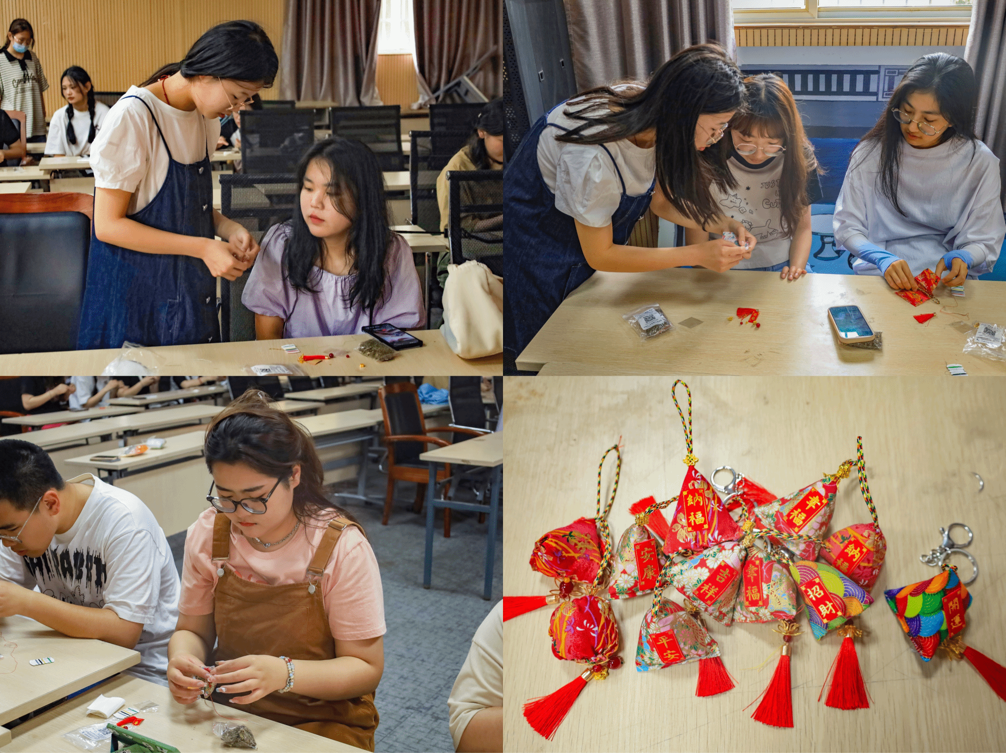 5月14日,伟德国际1949始于英国于学院学术报告厅开展“感念慈母恩 妙手巧生花”活动。50余名学生手拿针线,精心挑选香料,用巧手制作香包、钥匙扣,为母亲送上“专属”节日礼物。