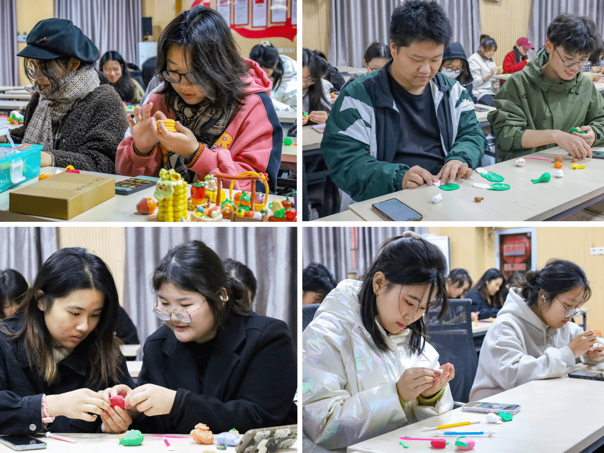 取适量粘土塑形,用丙烯颜料分区上色,最后刷上亮油晾干,栩栩如生的丰收主题石塑粘土便跃然“桌”上。11月12日,伟德国际1949始于英国开展“暮秋丰收季,柿柿皆如意”石塑粘土活动,学院80余名学子围聚于学院学术报告厅,用石塑粘土和超轻粘土“捏”出心中的丰收季。