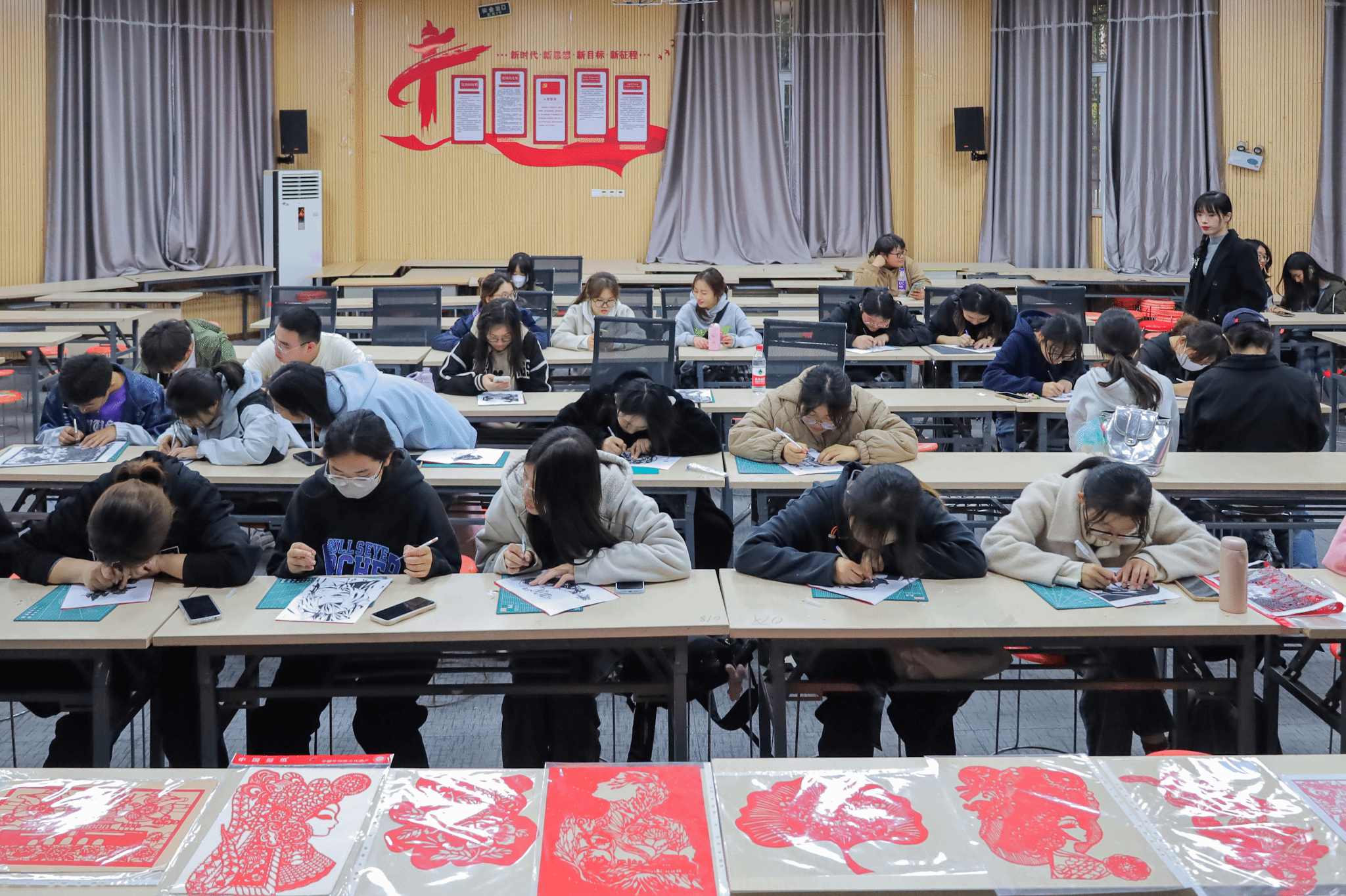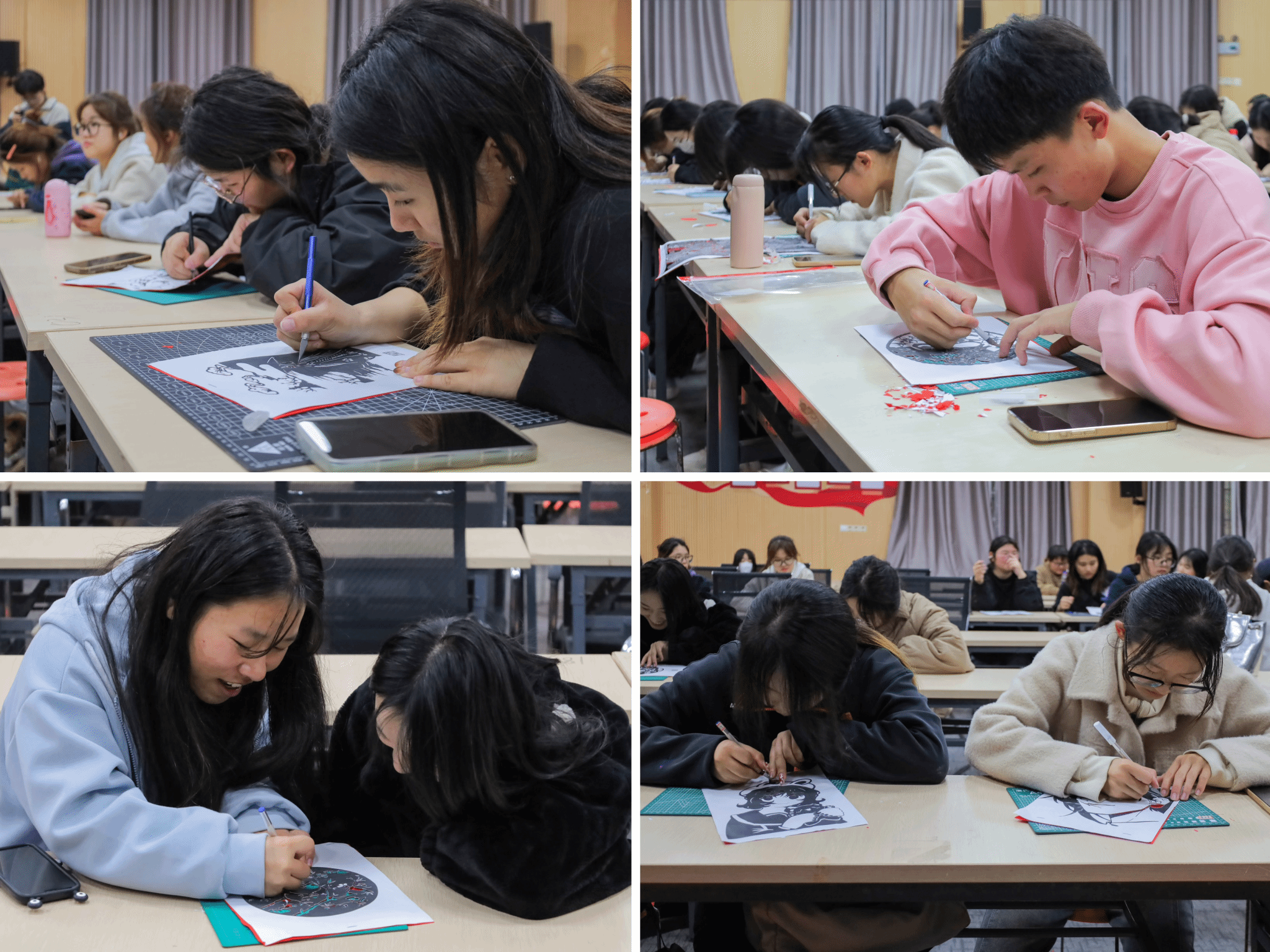 一张红纸、一把刻刀、一份垫板,在一笔一划的雕刻中,二十余份剪纸作品纷纷“亮相”。11月26日,伟德国际1949始于英国在学院学术报告厅开展“绘梦青春,共‘剪’朝夕”活动,70余名学子手持刻刀,在与剪纸的“面对面”接触中体验非遗文化。