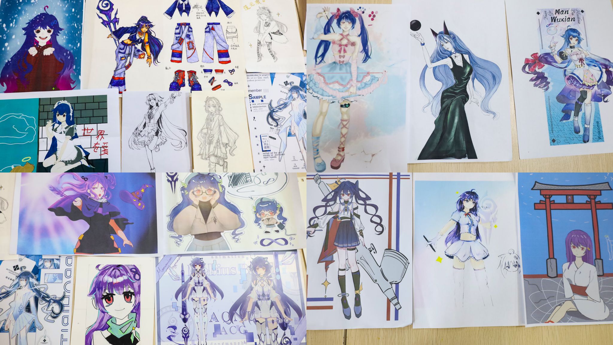 融合古韵元素的国风色稿古典韵味十足、添加机甲元素的人物立绘颇具未来感、“魔法少女”式搭配尽显绮丽风格……学生们通过数位板、平板或纸笔手绘,对该官方人物立绘进行大胆创新和个性化演绎,多种类元素“梦幻联动”,风格独特的画作令人目不暇接。