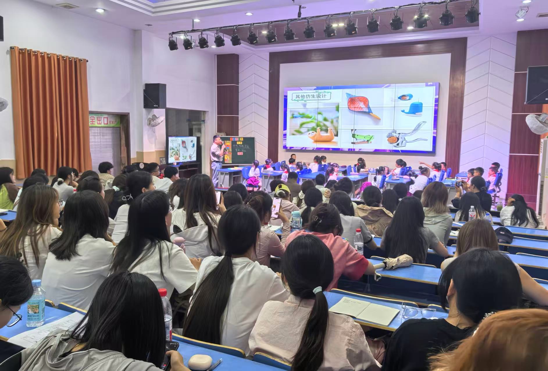 海口中心学校教师王海波则执教《生动的建筑》一课。作为新进教师,王海波大胆创新,将AI技术融入课堂,设计“小小工程师”闯关游戏提升课堂互动性。他巧妙运用仿生建筑案例(如“西红柿医院”教具)阐释中外建筑知识,有效激发学生兴趣。课堂采用小组合作形式,学生通过撕纸、拼贴、勾勒线条等方式完成创作,在实践中深化对建筑艺术的理解。课程末段的师生共同评价环节,积极践行了“艺术源于生活,服务于生活”的理念。